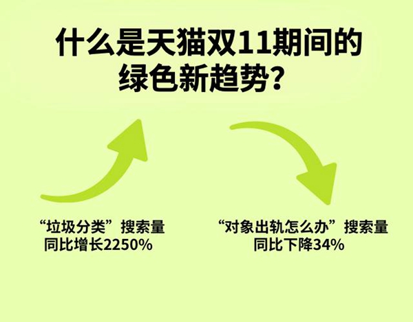 新消费不止体现在新品、新品牌、新增长机会,也体现在消费理念的更新。绿色消费已成为中国人消费的新风尚。正如天猫总裁、淘宝总裁蒋凡此前所言:今年的天猫双11将是一个绿色的双11,绿色消费商品将成为趋势。