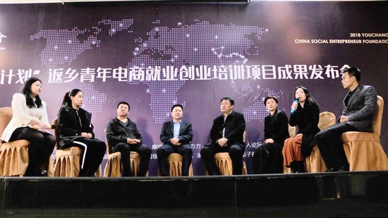 政府代表潘新超副主任提到:“如何引凤回巢是个很难的问题,作为政府来说,首先要建设好硬环境,当地有好产品、好环境、好待遇,要给人才搭好通道;另外要提供软环境,在政策上对其进行支持。县域电商引凤回巢首先要政府担当、其次是企业担当、最后是个人担当。”专家代表徐大地先生认为县域扶贫方面,返乡青年可以从以下三个角度进行优化:1.产业(优化当地产业);2.销售(打通农产品上行);3.服务(完善基础设施,改善当地基础服务)。